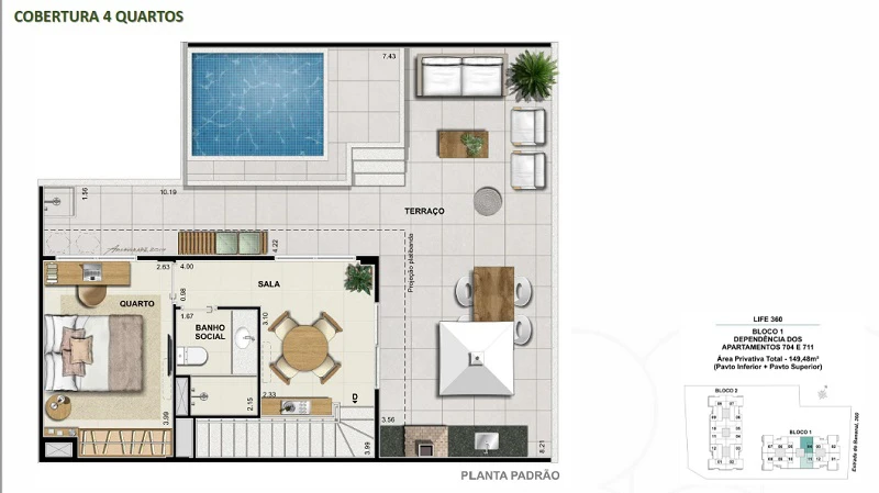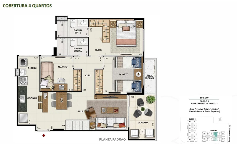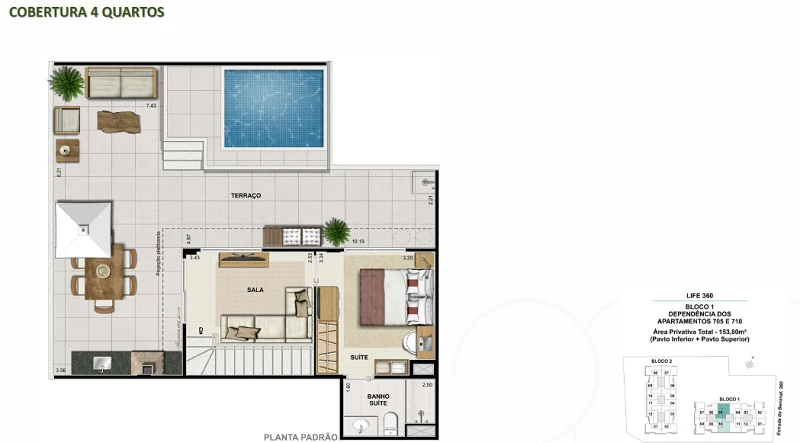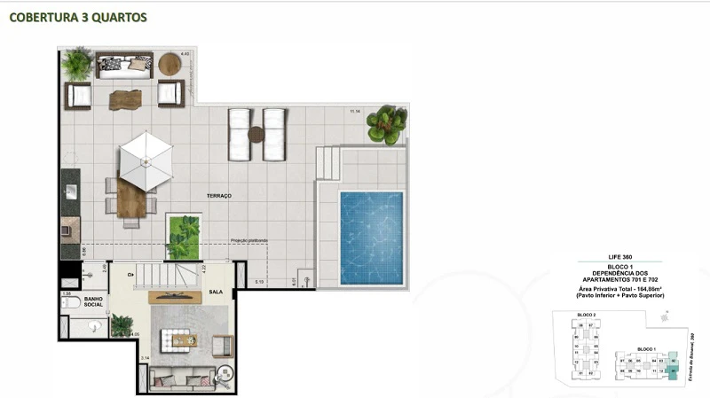 Coberturas de 3 e 4 quartos de 119 até 164m².